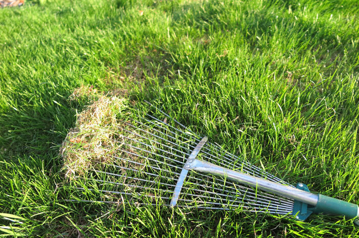 There are multiple methods to remove thatch. The method used depends on the size of the lawn and the equipment available to the homeowner. Leaf rakes and spring loaded rakes can remove thatch by aggressively raking the lawn and removing the organic material. This method may work better on smaller lawns where it wouldn’t be time-consuming to rake a lawn by hand. There are some spring loaded rakes which can be pulled by a riding lawn mower which is also effective at removing thatch. Vertical mowers and power rakes are two machines which aggressively cut into the grass vertically and can be set to certain depths depending on the depth of the thatch layer in the lawn. When using the leaf rakes, spring loaded rakes, vertical mowers, and power rakes it can be more effective to go through the lawn in two different directions to increase the amount of thatch removed. Hollow tine aeration is another method which can remove thatch from the soil. Soil cores are removed through hollow tine aeration and the thatch which is attached to the soil cores is also removed. By creating holes in the soil, aeration allows for greater air movement in the soil which can improve microbial breakdown of thatch. Each of these methods can be used to remove thatch. The best method depends on the size of the lawn and the tools a homeowner has access to. Using two methods such as aeration and spring loaded raking can remove more thatch. Also going in two directions will remove more thatch.